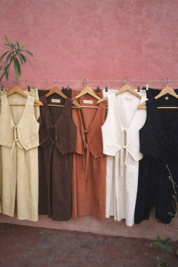 Chaleco: Es una pieza distintiva que complementa el pantalón con un ajuste entallado en el busto gracias a sus pinzas. El chaleco se adapta perfectamente a diferentes estilos de tops o camisas debajo, ofreciendo múltiples opciones de uso.