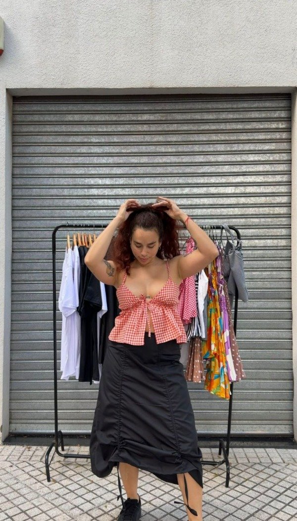 falda Midi con frunces laterales regulables con lazos.